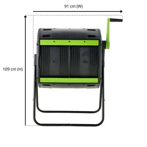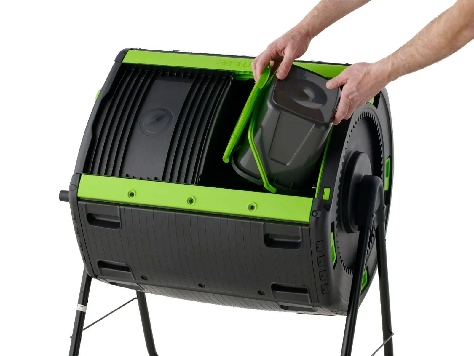 The Tumbler’s two compartments enable continuous composting. When the first compartment is full, simply start on the second compartment. Once this side is full the first side is ready to empty, and the cycle continues.